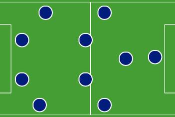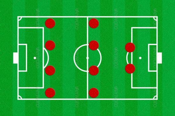 因为4-4-2蝶形中场阵型的中场球员呈双线分布,所以从整体来看,此套阵型会呈现4条线,其中前锋线一条,中场线两条,后卫线一条。