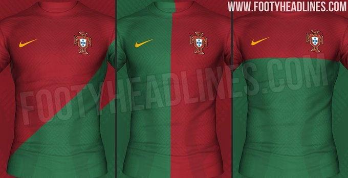 这三种方案均采用了红绿撞色设计,这是首次在葡萄牙球衣上出现,分别为经典的对半设计、摩纳哥风格的对角线对半设计以及上红下绿的水平色块设计。三种设计方案的耐克标志均为金黄色,同时短裤均为绿色。