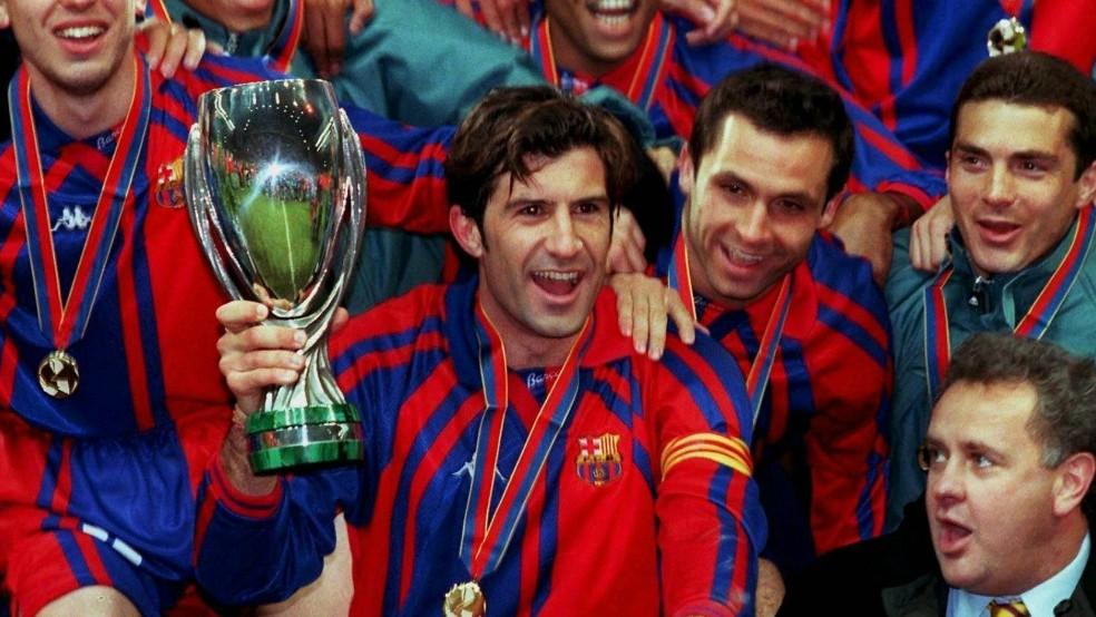 1995年6月,菲戈加盟西甲的巴塞罗那足球俱乐部,当时菲戈的转会费高达2000万美元,其转会费创当时世界纪录。菲戈在巴萨的首个赛季已经牢牢占据主力位置,对于球风相近的西甲,他无需任何适应,更为关键的是菲戈已成长为球队进攻的利器,游弋在边路却具备一名中路组织者的所有素质,35场联赛贡献了5粒进球,菲戈在西甲的第一个赛季表现相当不俗。随后菲戈帮助球队在1997-98和1998-99两个赛季夺得西甲联赛冠军,而且在2000年欧洲杯上,菲戈还带领葡萄牙闯入四强,尽管在半决赛中不敌法国,但是菲戈在比赛中的表现非常抢眼,尤其是在小组赛大逆转战胜英格兰一战中,菲戈凭借卓越的个人能力打入了被奉为经典的一球,他也凭借这出色的表现荣获2000年欧洲足球先生和金球奖。