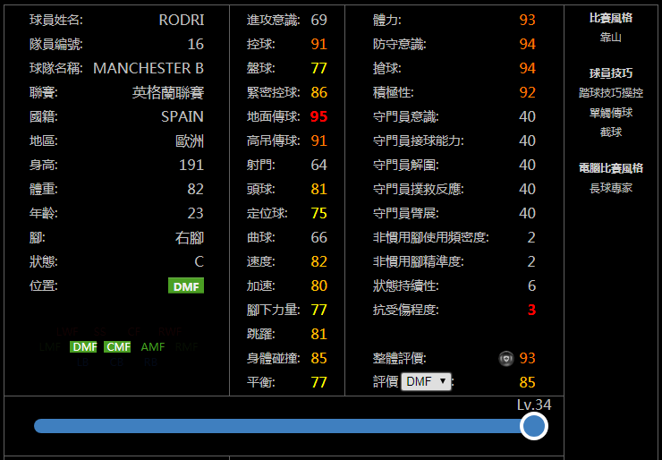亲测简评:相对于19赛季对抗能力不太理想,罗德里在新赛季算是一名完美的靠山后腰,承受冲击的同时能干好文活,应该会成为大家使用率最高的后腰。