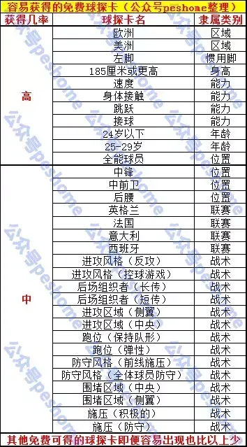 除了以上表格中所述可以通过联赛和活动赛赛后奖励免费获得球探以外,隶属于能力球探的身体控制卡,隶属于联赛球探的俄罗斯、土耳其、瑞士、比利时、苏格兰、丹麦、哥伦比亚、中国、日本、泰国卡,以及所有的俱乐部球探、国家球探、技能球探、风格球探和电脑比赛风格球探,都不能通过活动赛或联赛的赛后奖励免费获取,只能通过拍卖行竞拍或者官方举办的赠送球探活动(极其罕有)才能得到。