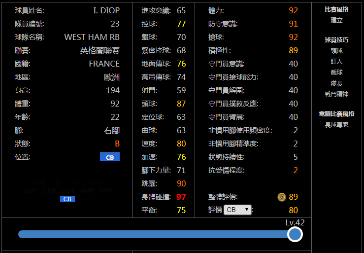 亲测简评:考虑到库利巴利在新赛季有时候会比较鬼,时灵时不灵,大多数外服玩家的主力中卫配置都是范迪克+德利赫特,再除开传奇坎贝尔,我用过最强的中卫就是伊萨·迪奥普了,而且并不比范迪克逊色太多。