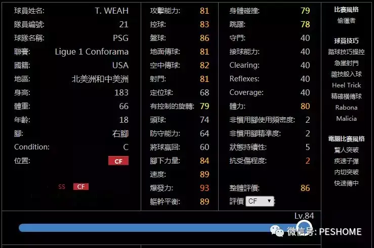 不出意料,蒂莫西·维阿在小编的球队中贡献了巨大的能量,成为了小编培养并截图推荐的pes2019第一个总评过百妖人,其个人实力也超越了pes2018中的姆巴佩,目前暂时成为了这两代以来小编用过个人能力最强的一位攻击性球员。
