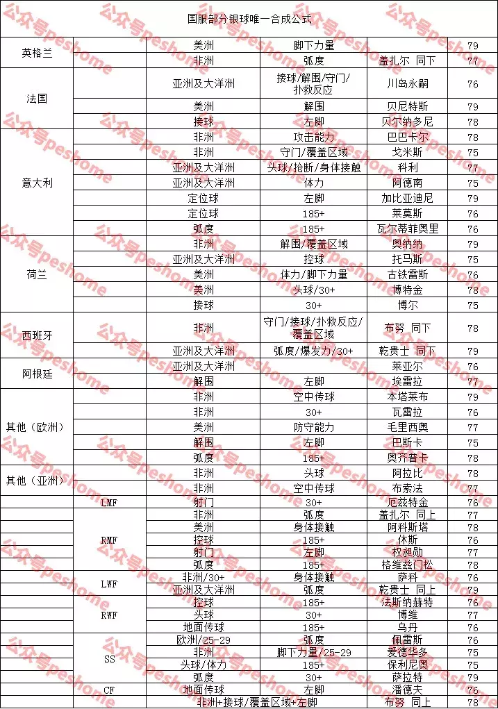 注意本文中的资料以实况足球手游版国服新引擎的翻译为准,端游myclub和手游外服的老铁也应当能自行对应出konami给予的译名,这里就不再做专门解释。各位可以配合日前小编发的自动刷联赛方法,在获取GP等联赛晋级奖励的同时得到大量赛后奖励的球探卡,然后参考本文中的几个表格进行规划与合成相同球员进行3换1操作,以后再也不用打听某某妖人的公式是什么,直接3换1即可,还免去了在拍卖行大出血的成本。