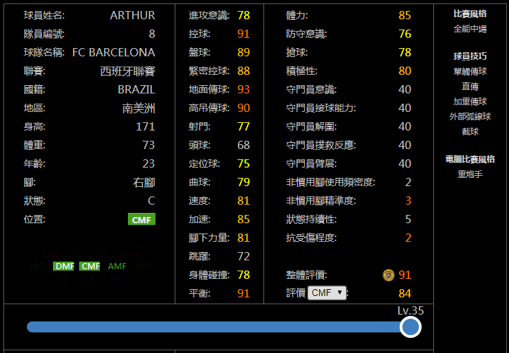纸面简析:在一堆全能中场怪物中,阿图尔这样的能力值和模型并不吃香,新赛季随着其他人的大涨,使用阿图尔的人应该会减少。