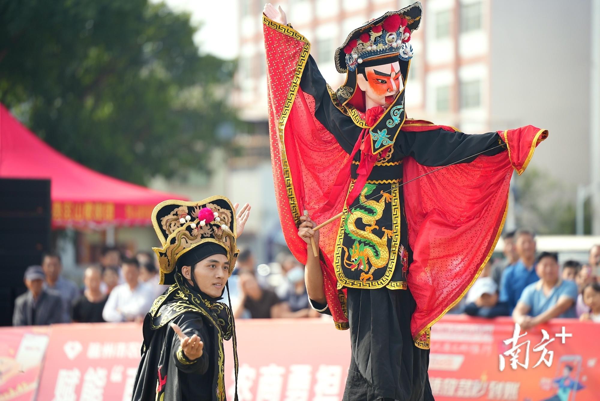非遗木偶戏表演。