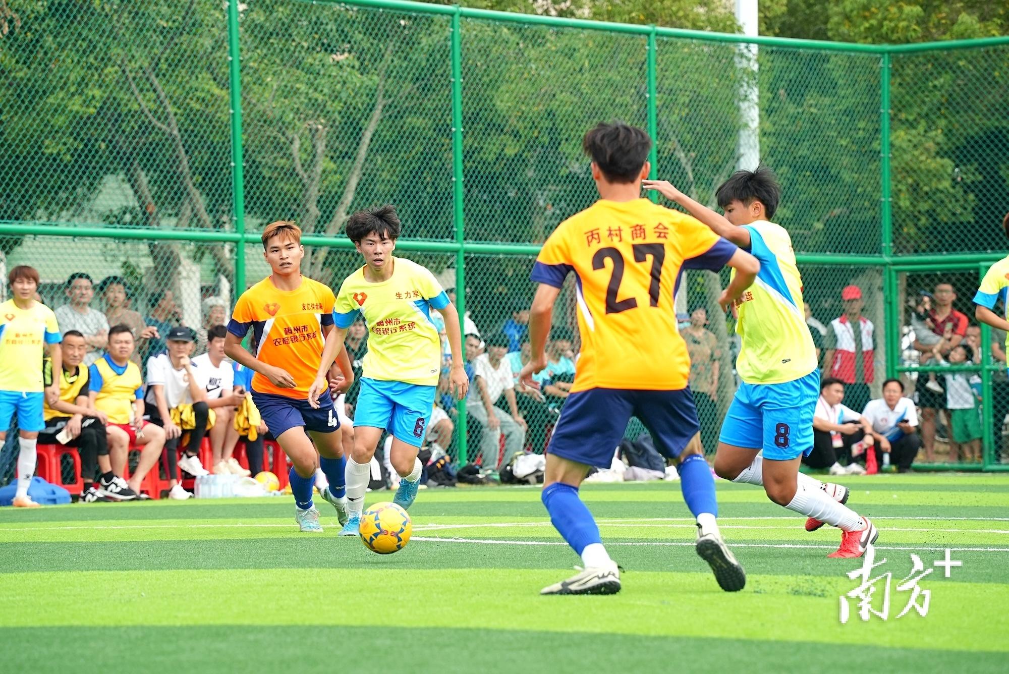决赛在“草坪队”与“佛山松岗客家”间展开。场上球员们你争我夺,场下加油声、喝彩声“声声”不息。最终双方均未能实现“破门”,遂通过点球决胜。“佛山松岗客家”门将曾华发挥神勇,连续两次扑出对手点球,帮助球队击败对手,获得本次比赛冠军。