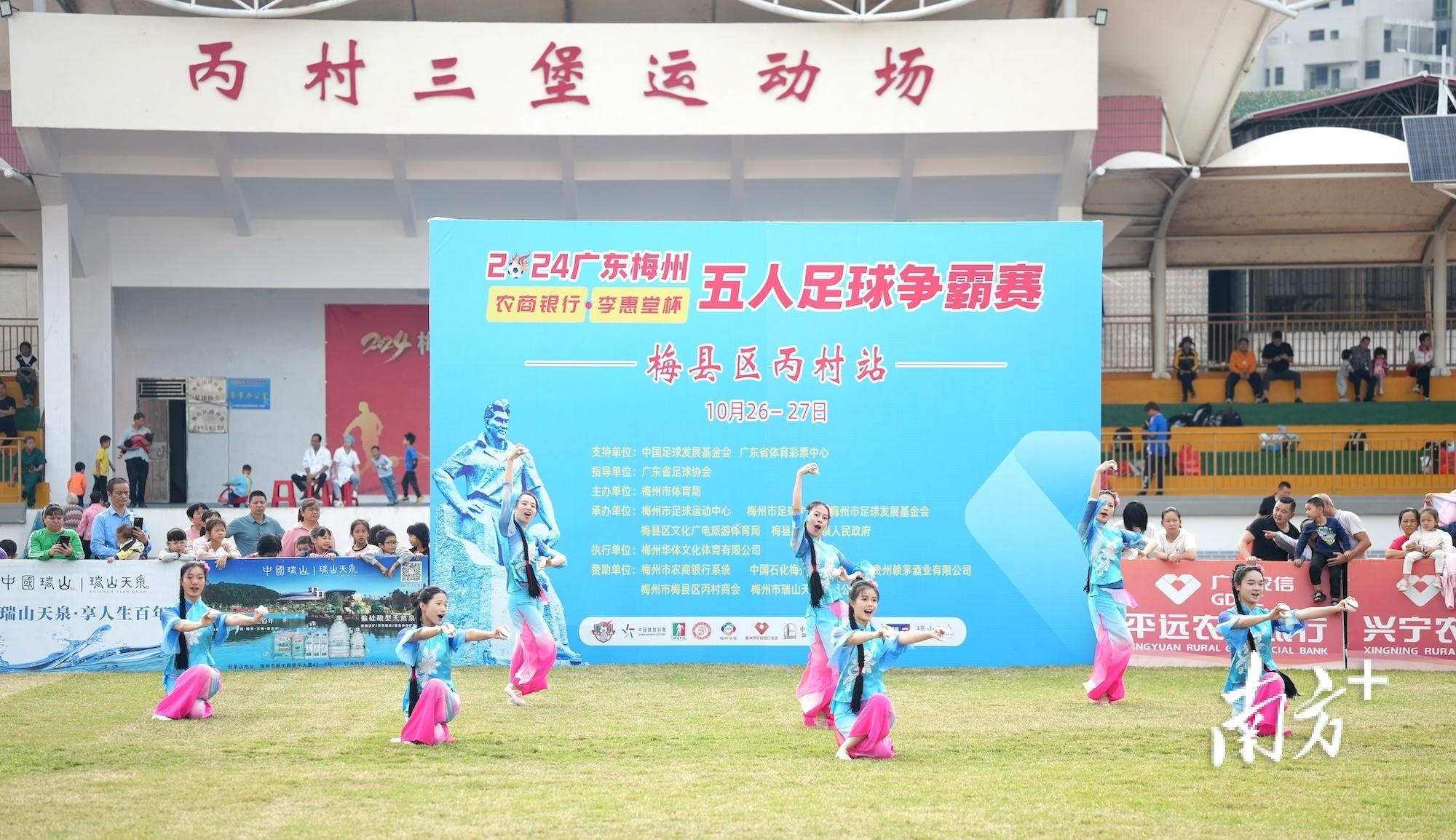 8时许,雨停,二三十名穿着足球服的人陆续来到运动场。球场上搭建的临时背景牌也被人竖了起来,巨大的海蓝色广告布上,“五人足球争霸赛——梅县丙村站”几个红色大字格外显眼,林秋霞远远就看得清楚。当天,由广东省足球协会指导、梅州市体育局主办的2024年广东梅州(农商银行·李惠堂杯)五人足球争霸赛10月第四站梅县区丙村站,在刚完工不久的丙村·长隆足球公园项目足球场“开波”。