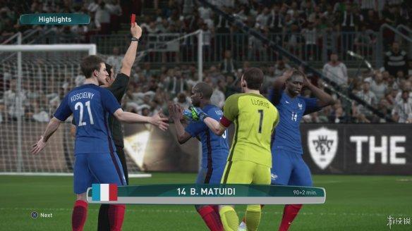 虽然说了那么多,但是还是要吐槽一下这个人物模型和画面。由于是试玩版所以只有在选择法国队和德国队的时候,赛前会有人物的特写镜头(唱国歌时)。但是这个画面对于我而言只能说是过于渗人了,特别是球员的眼球看起来实在是太可怕了,那些现实中大眼睛的球员你在游戏中看到的却是双目圆睁,戾气十足的样子。黑人球员更是没有人权,一个个看起来都像是没有睡醒被人强行拉过来比赛一样,一脸的倦意。那些眼球颜色浅的球员看起来就像是失明的人一样,这眼球颜色是在是太浅了都没有眼珠了。最可怕的一点是有些球员的眼球会不时左右移动,但是这场景绝对不是你所想象的那样,他的眼珠会从眼眶的一边移动到另外一边,然后再移动回去,虽然知道这个画面是要表示球员的紧张状态,但是实际上看起来是在是过于惊悚了一点。不过在球员的面部表情上面,实况2017做的还算是不错的,即使同FIFA进行比较的话。球员在各种状态下面的表情动作,刻画的都是相当不错。球员的红牌之后的“围攻裁判”,与进球失之交臂之后的捶地泄愤,在本方球员吃到黄牌或者被吹罚任意球是对裁判的施压等等画面看起来都比较自然真实和流畅,即使放在FIFA系列的游戏中这样的画面表现力也是无可指责。