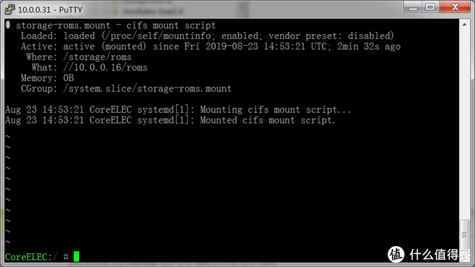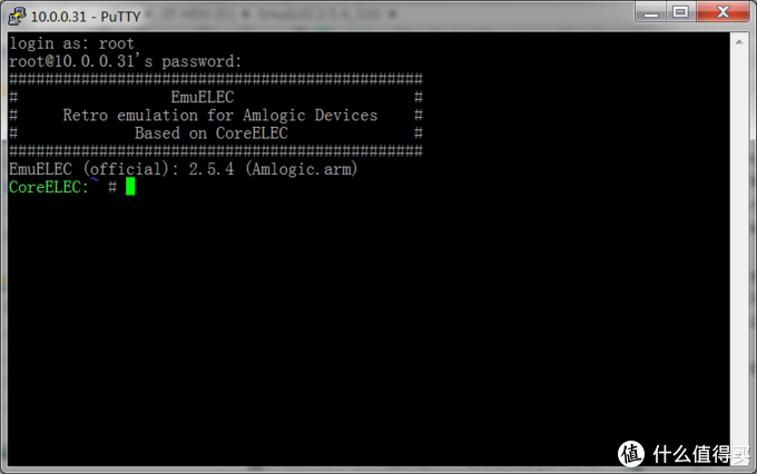 等待系统重启完成后则扩容完成,然后同样的方式再次用putty登录EmuELEC系统,执行