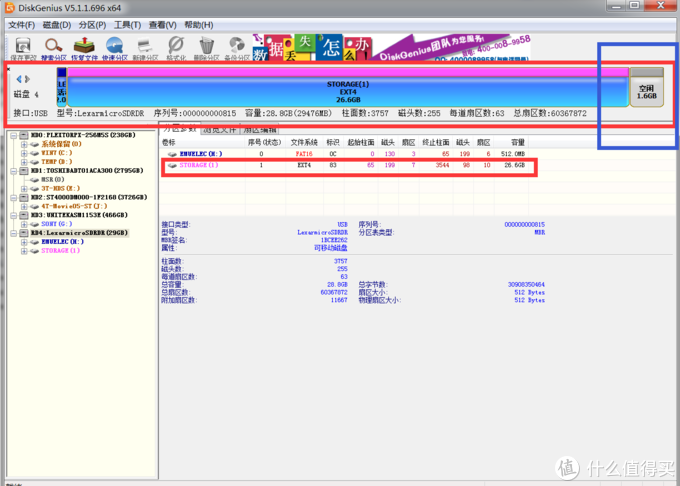 这样就会出现我本文前说的用DiskGenius会看到有剩余空间。