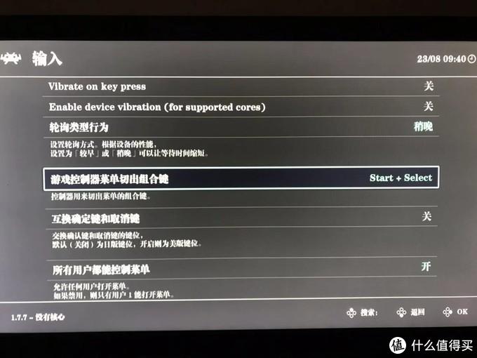 表现就是能识别手柄,但是按键映射无法完成,按了按键无反应。这时其实退出就可以了,因为EmuELEC自带PS3的配置文件,只要它把手柄识别处理后,直接去RA做一次映射即可,不用纠结在ES中一定要映射完成。