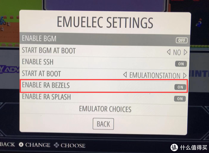 不喜欢的可以按start后从EMuELEC setting中关闭RA Bezels即可。