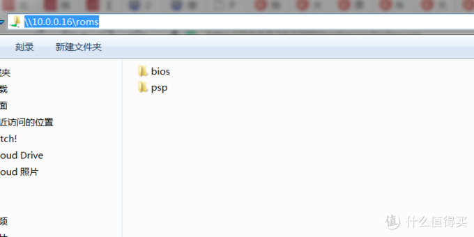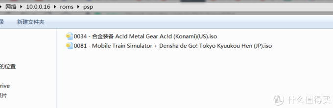 检测的方式可以用windows下的网上邻居打开验证,比如下图中就是//10.0.0.16/roms。将游戏和bios全部放在NAS的共享文件夹下面,我这里只放了PSP的两个游戏。