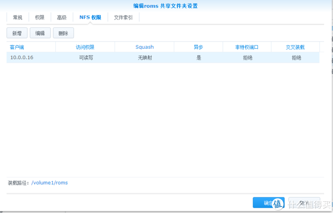 全路径共享名称: //10.0.0.16/roms (虽然群辉显示装载路径还有一个volume1的值,实际可忽略。其他的nas什么情况,我没有也不确定,所以一切以实际路径为准)