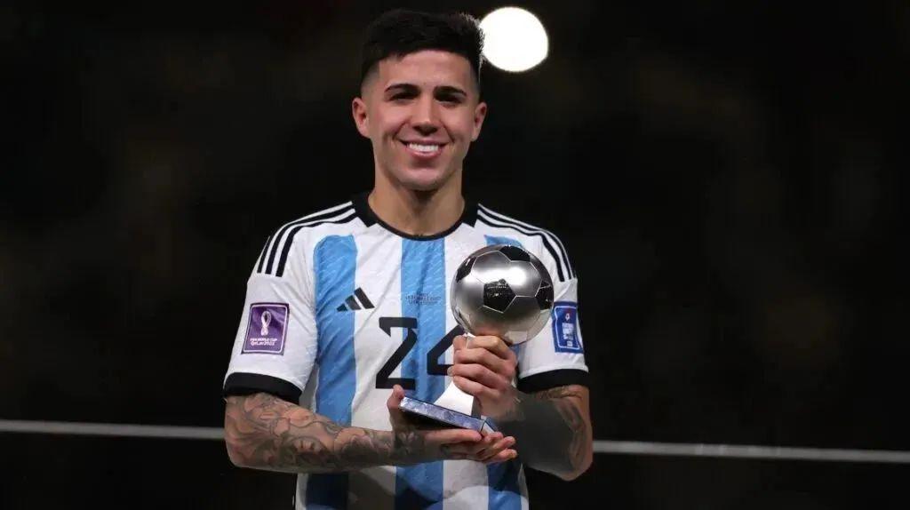 记者寒冰报道 恩佐·费尔南德斯的名字,来自阿根廷豪门河床和乌拉圭传奇球星“王子”恩佐·弗朗西斯科利。明年1月将年满22岁的他,也成为了冬市最受欢迎的阿根廷“王子”。9月才刚完成阿根廷国家队处子秀的恩佐,在夺得世界杯冠军和最佳新人奖后,已经收到来自利物浦、皇马、大巴黎的橄榄枝,葡萄牙媒体甚至称本菲卡已经回绝了过亿报价,坚持必须激活1.2亿欧元违约金条款才肯放人。