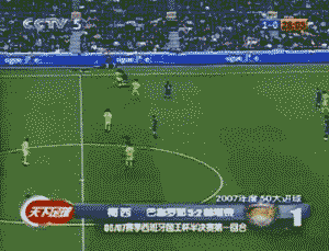 第二位:小罗(倒钩,西甲-巴塞罗那vs比利亚雷亚尔)