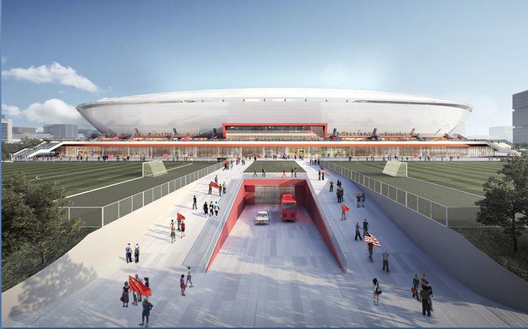浦东足球场规划方案效果图↑
