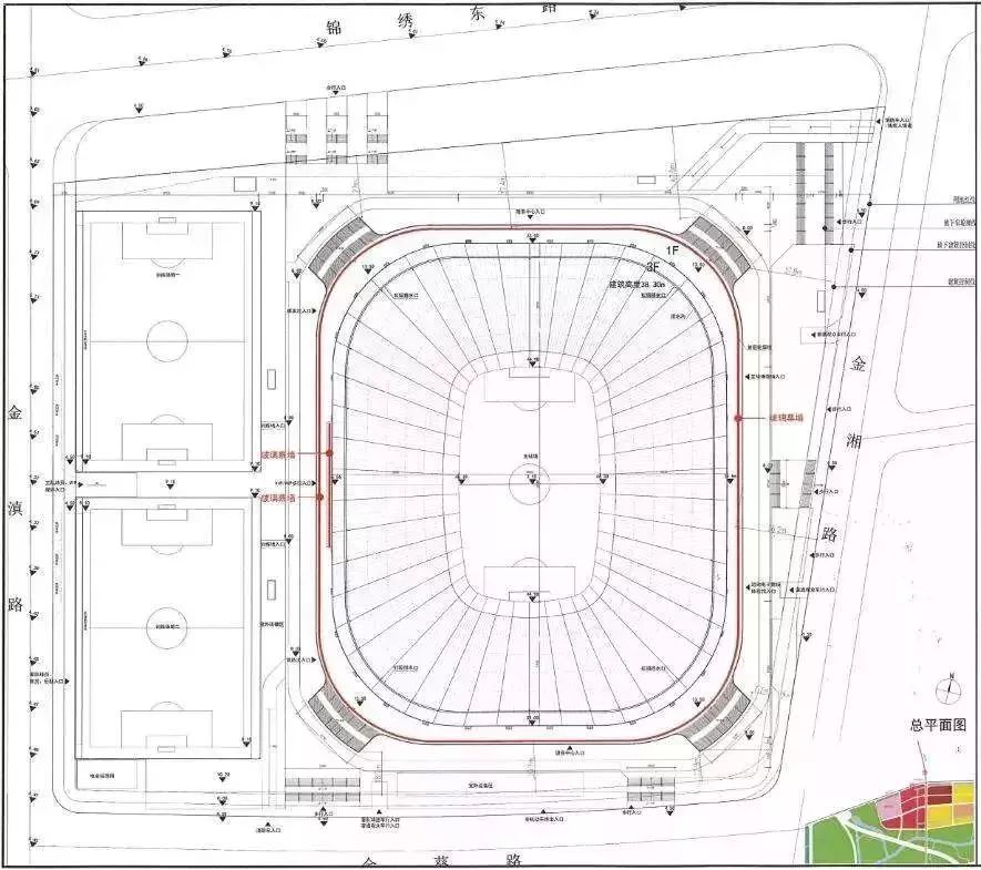 该地块拟建一幢专业足球场建筑