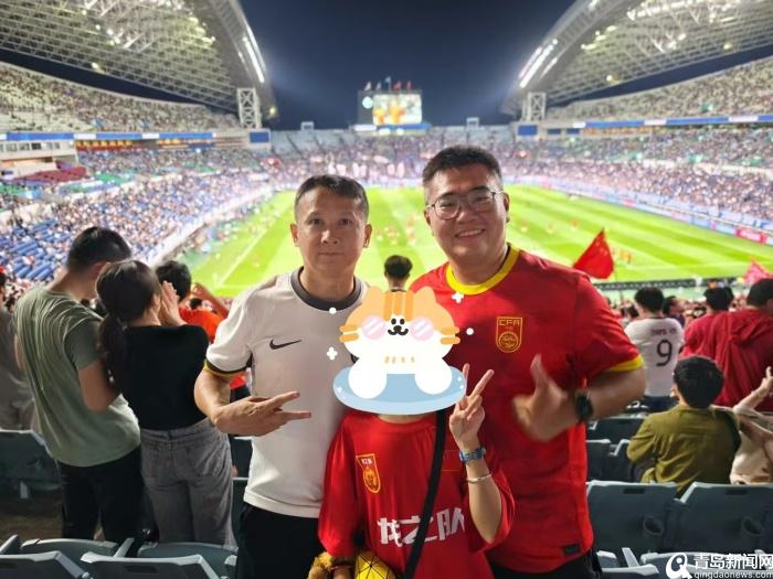 (2024年9月,何胜带着女儿在现场目睹中国男足0∶7不敌日本队)