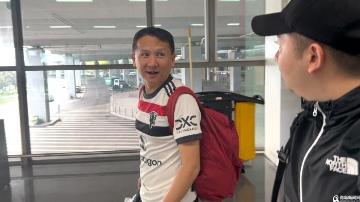 (2024年10月14日,何胜乘机抵达青岛。10月15日,他将现场观看中国男足与印尼队的世界杯预选赛)