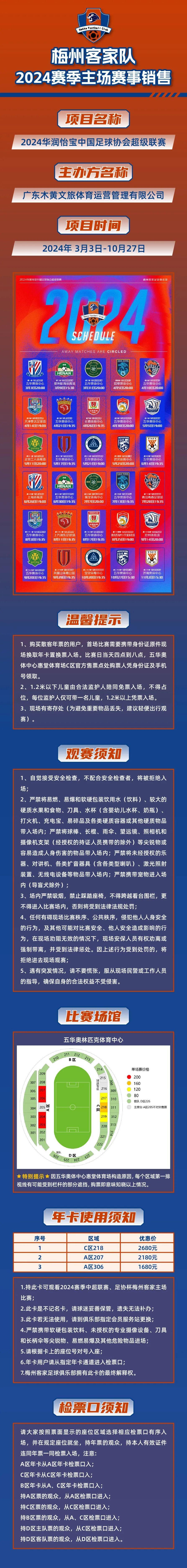 2024年华润怡宝中国足球协会超级联赛第17轮(补赛:6月18日19:35,梅州客家VS上海海港)的比赛将在五华奥体中心惠堂体育场举行。本场比赛单场票于6月7日17时正式开始售票,本轮比赛八折购票,入场时请按票区,并配合安检志愿者、检票人员扫码对号入座。