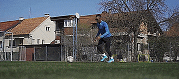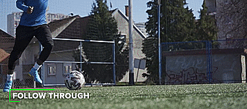 这样做是为了确保球更干净地离脚,接着,控制腿摆过的身体。然后支撑脚可以离地,当支撑脚离地后,踢球脚随之落地,这是腿部摆动的动量决定的。