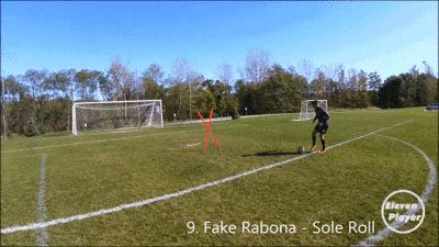动作十:脚底拉球—跨步—反向克鲁伊夫