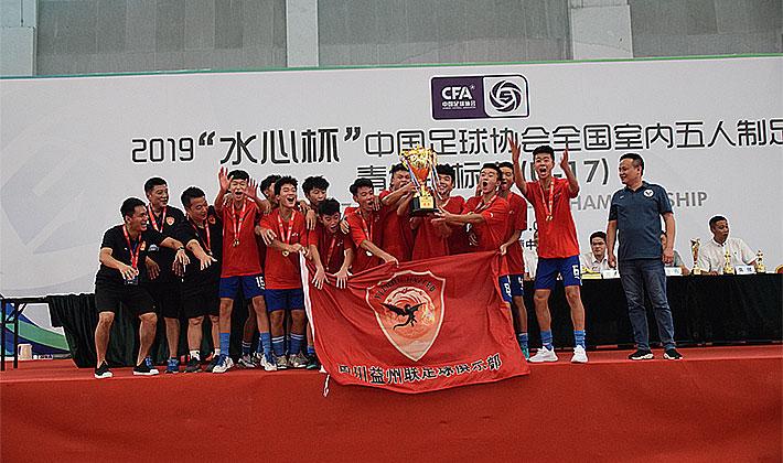 8月11日,2019“水心杯”中国足球协会全国室内五人制足球青年锦标赛(U17)进入最后一个比赛日的争夺。在冠、亚军决赛中,四川益州联队以5:3的比分战胜内蒙古包头队,问鼎赛事冠军。中国足球协会、浙江足球协会以及温州足球协会相关嘉宾出席闭幕式,向集体及单项奖获得者颁发奖杯与奖牌。