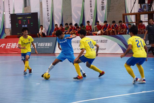五、六名决赛由安徽翔宇队对阵广东奥世队。比赛中,以快速进攻为战术的广东奥世队在上半场便取得了4:1的领先优势。下半场开始后,安徽翔宇队加强了在中前场的逼抢力度,并在连入三球后,在第33分钟由5号球员比拉力·艾和提将比分反超至4:5。第34分钟,乘胜追击安徽翔宇队8号球员艾克拜尔·艾尔肯低射破网,扩大领先优势。比赛最后30秒,安徽翔宇队由10号球员尤德骏再下一城,就此帮助球队以4:7分比分逆转取胜,收获赛事第五名。
