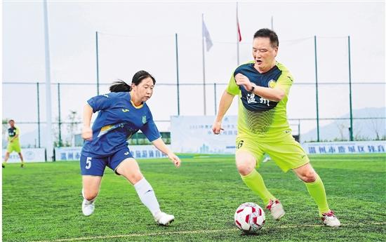 温州老年足球队和温州体育运动学校女足队“热血对决”。