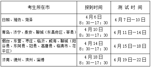体育专业考试安排在山东师范大学(千佛山校区)进行,考生需从学校西门内报到(经十路与历山路交叉口北行100米路东)。