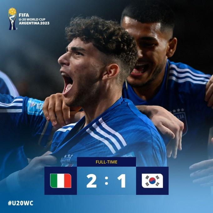 直播吧6月9日讯 U20世界杯半决赛在今日结束,帕方迪任意球绝杀,助意大利2-1淘汰韩国,从而和乌拉圭会师决赛。