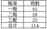 喜欢研究单关的朋友可以借鉴一下上面的统计数据,当作一个小的数据库,说不定可以找出一些自己的东西出来。有了以上的数据库之后,开始了数据分析。单单从胜平负来看的话,主胜56场,平局23场,主负35场,胜平负不均衡均衡,买主胜为盈利点,可以看出主胜的场次占据50%以上,也就是说只要选择主胜就至少有一半的概率是可以中奖的,而偏爱双选的朋友中奖的概率,尤其是选胜负双选的可达79%以上!