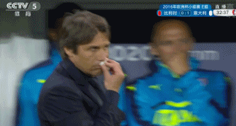进球之后不久,摄像机捕捉到了场边的意大利队主教练孔蒂,孔蒂正在用纸巾擦着脸上的血。