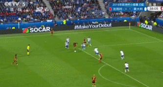 第82分钟,比利时前场断球,德布劳内横传,巴舒亚伊前点将球漏过,卡拉斯科后点推射击中门柱弹出。