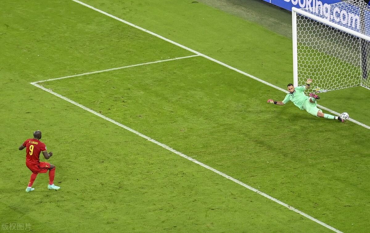 1分钟后,多库带球突入禁区左侧被迪洛伦佐推倒,裁判判罚了点球。卢卡库主罚点球,他骗过多纳鲁马将球打进。上半场结束,意大利队暂时2-1领先比利时队。
