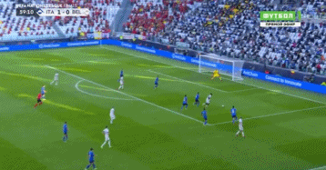 随后意大利发动进攻,坎德雷瓦传球,佩莱在阿尔德韦雷尔德的防守下高高跃起在小禁区线上近距离头球攻门,库尔图瓦神飞身一个班克斯氏的扑救,将球封出。真是射的精彩扑的漂亮。