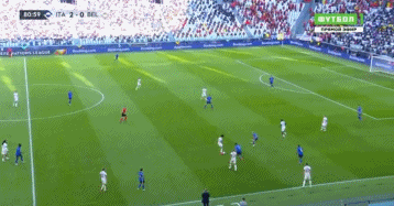 第31分钟,意大利队破门得分。博努奇在中场送出一脚长传,前场左侧贾凯里尼反越位得手,禁区里停球后右脚推射球门右侧破门。1-0,意大利领先比利时。