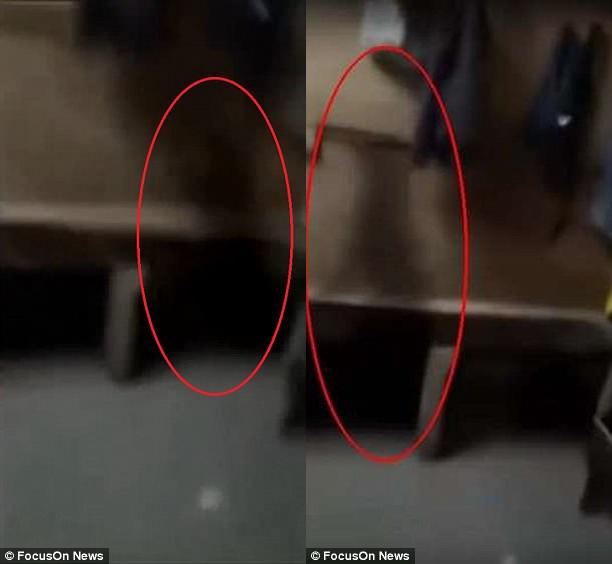 视频中间有一段画面,更衣室的长椅上出现了一团黑影,这团黑影快速掠过房间消失在墙边。背景音是Raul说话的声音, Raul当时并没有发现这团黑影,但是它却被手机录了下来。