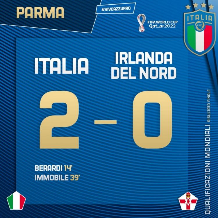 直播吧3月26日讯 北京时间3月26日3点45分,世预赛欧洲区C组意大利主场迎战北爱尔兰。上半场贝拉尔迪和因莫比莱各入一球,下半场两队再无建树,最终意大利主场2-0击败对手。