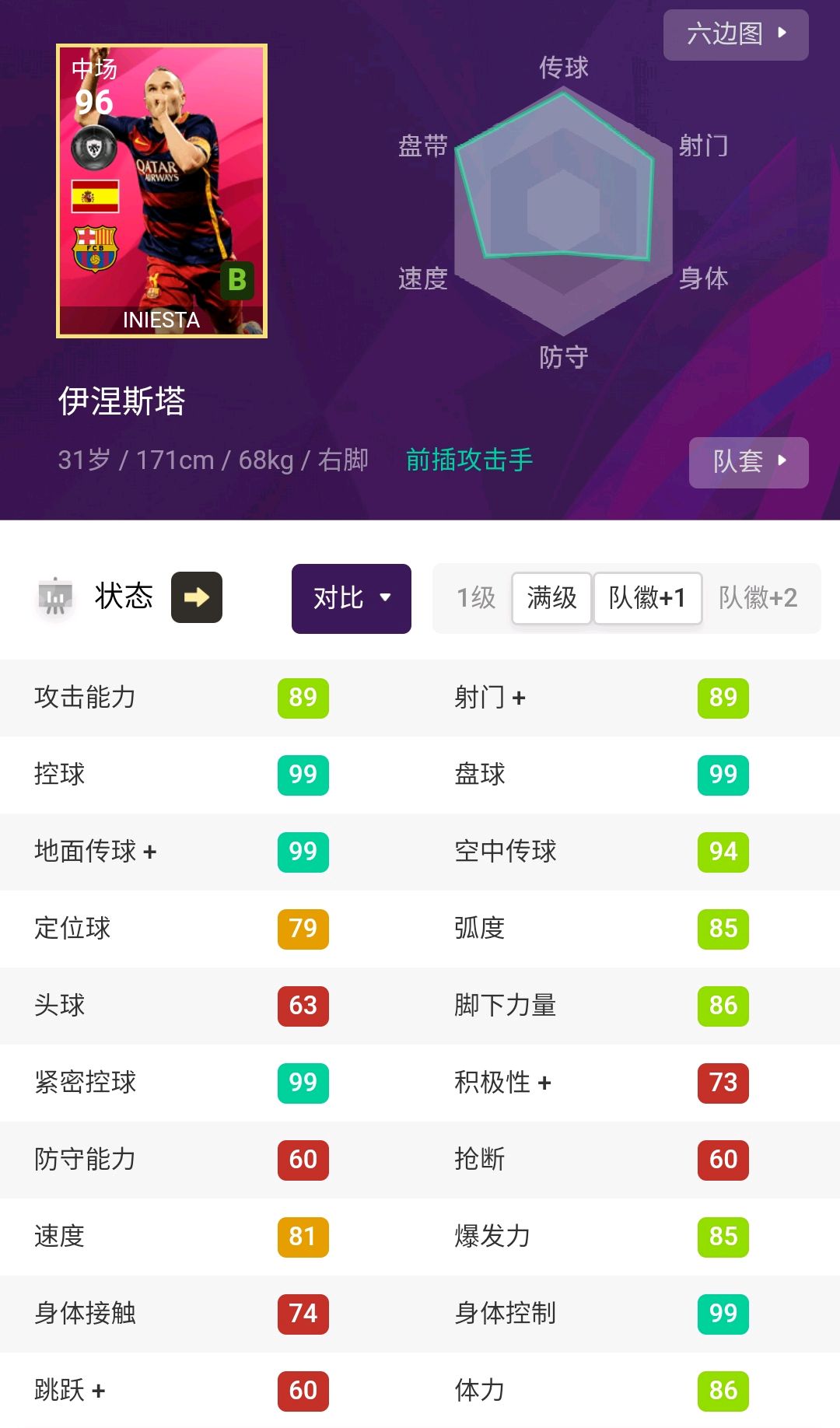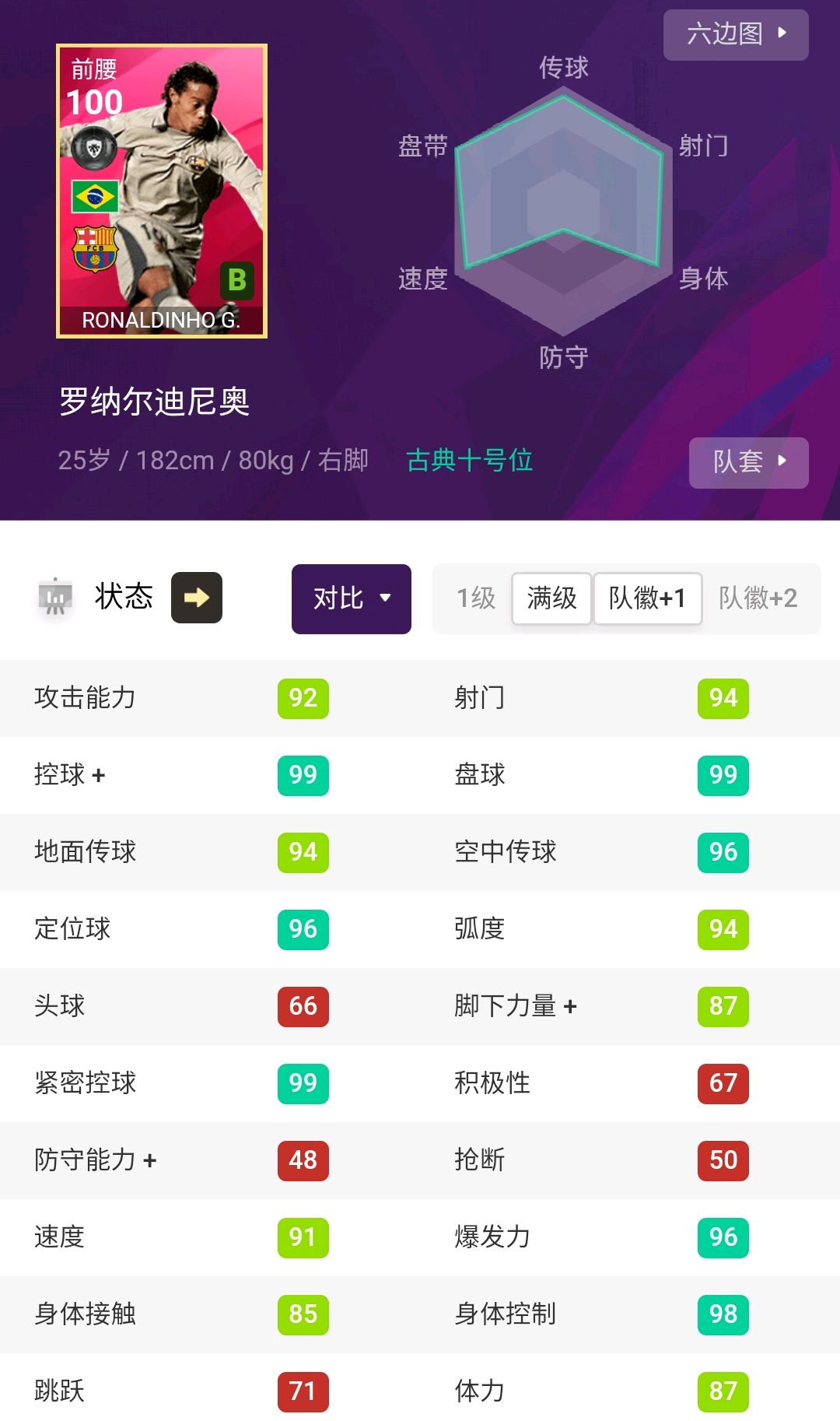 不过拿来打个前腰还是不错的,跟一些特别强的中场肯定没法比,毕竟身体摆在这,风格是前插攻击手就很舒服。