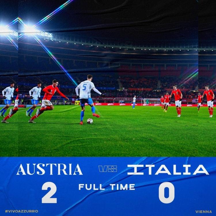 全场比赛结束,意大利0-2奥地利。