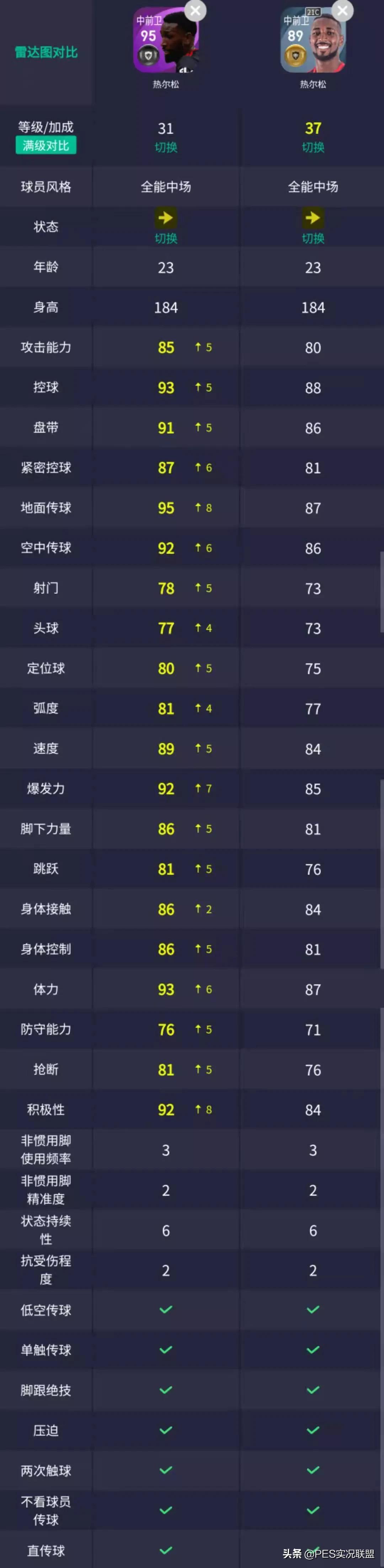 球员简析:184cm/66kg的模型基本就是个竹竿,实战对抗能力肯定低于纸面数据,而且热尔松(精)的能力中防守和射门都不强,单靠传球和速度显然无法成为热门中场,所以非队套玩家入手的意义不大。