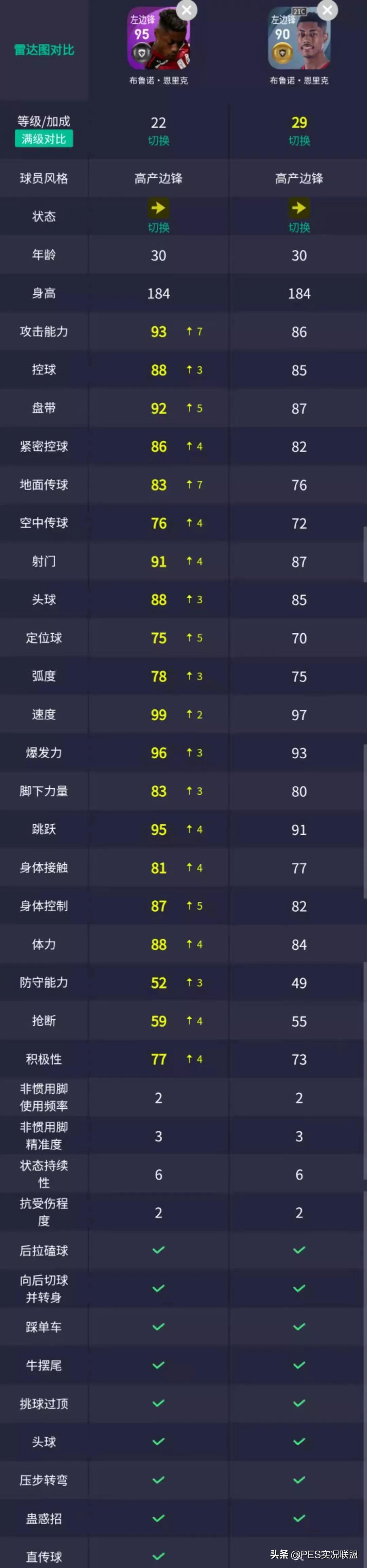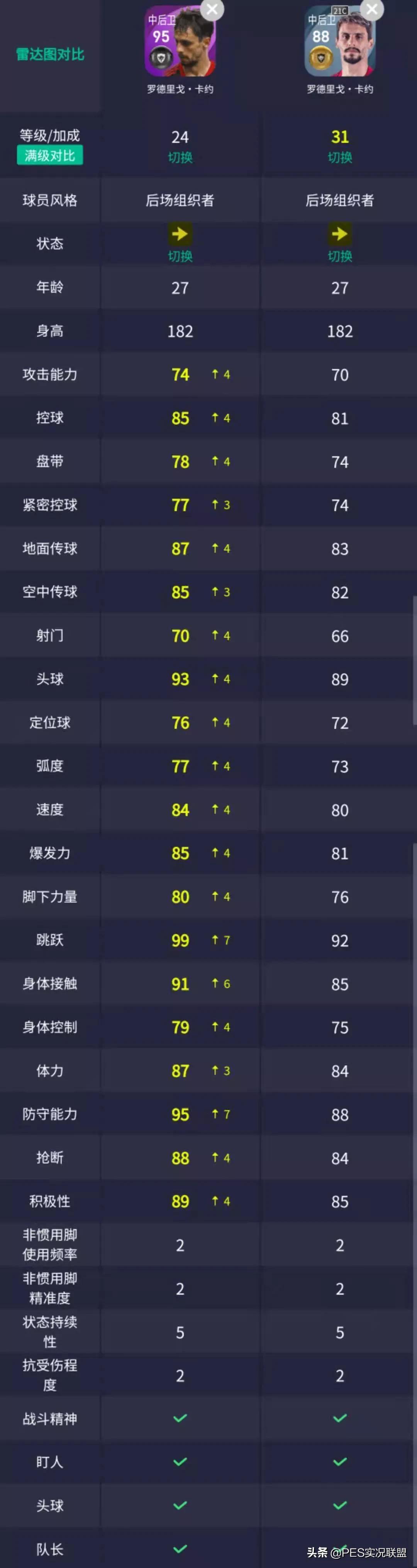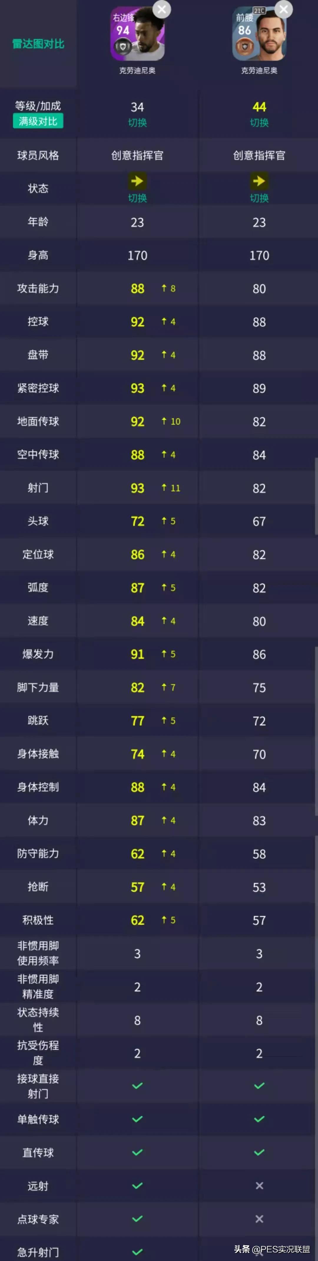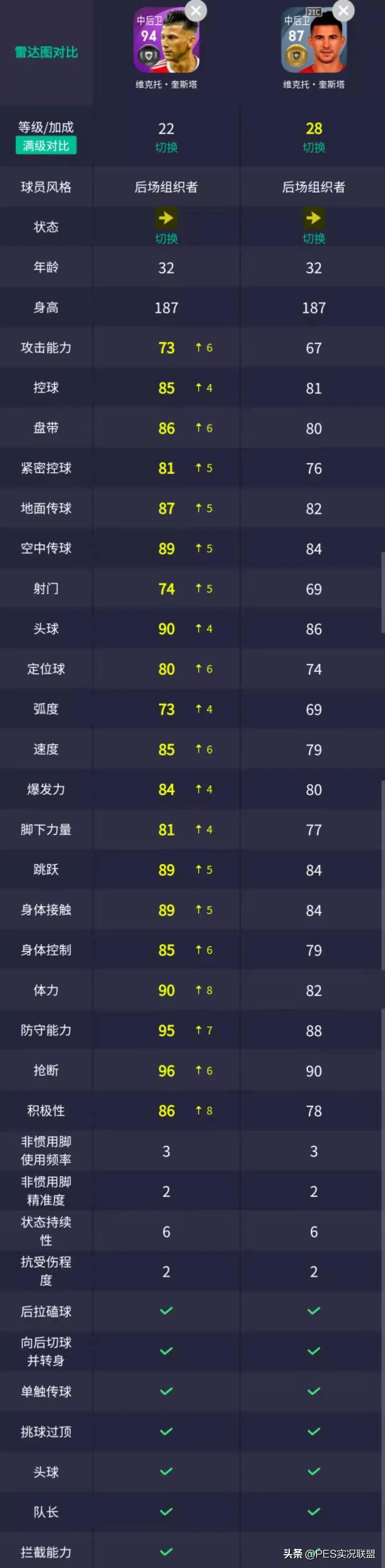 球员简析:德阿拉斯凯塔(精)虽然拥有很多T1级别数据,但模型、对抗和体力没有优势,并且射门水平也跟上一个版本相差甚远,因此整体实力尚不足以准毕业。不过由于自带超级候补技能,仍然可成为游戏中比较实用的替补人选。