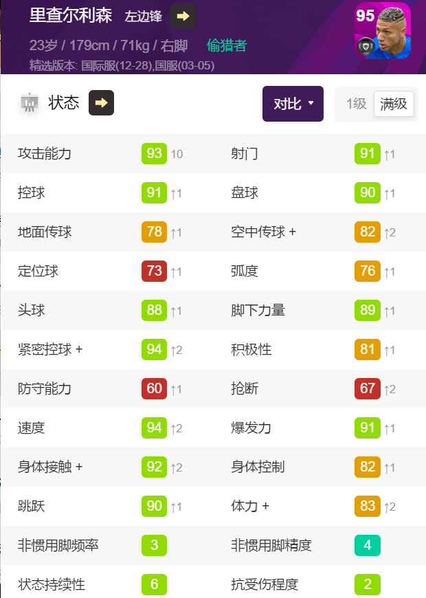 这张里查其实很不错,用过普卡的一定深有感触,虽然数据不如姆巴佩、哈兰德,但同时可出任左边锋和中锋,加上不错的过人和射门手感,我个人挺推荐大家兑换的。