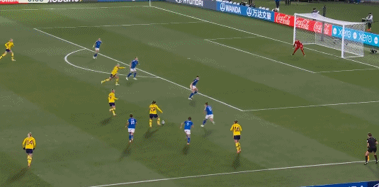 第61分钟,瑞典队取得进球,界外球掷入场内,贝里头球摆渡,约翰森侧身凌空抽射,皮球被防守球员挡了一下后飞进球门,瑞典1-0领先意大利。