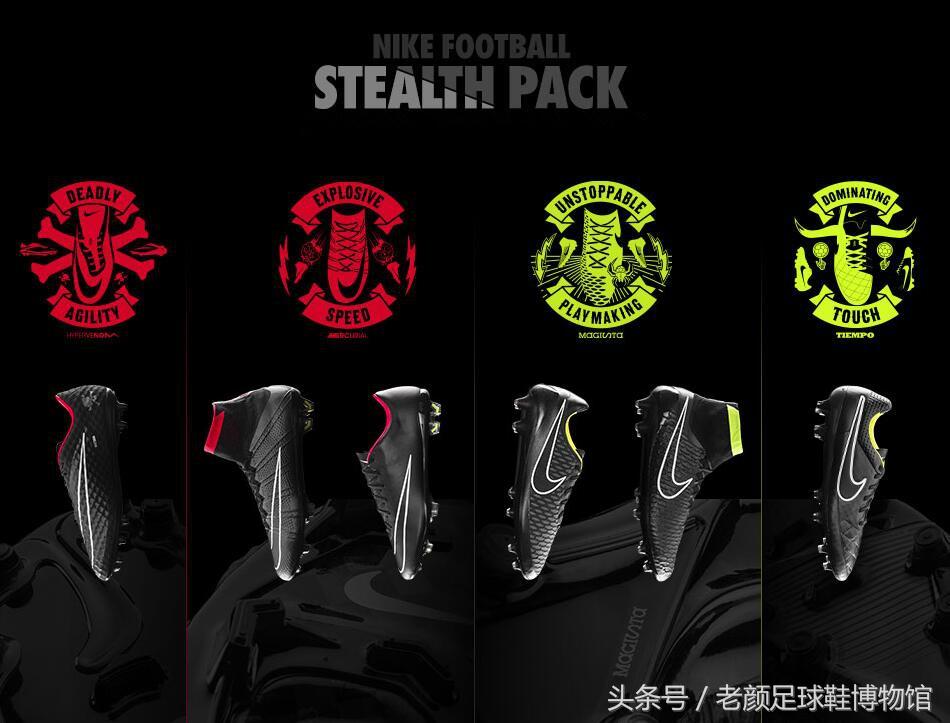 而黑色系战靴,在nike的系列配色中,比重很大,除了pitch dark 暗黑,2016年nike也有全黑学院配色,不过推广力度似乎没有15款的学院那么大,但nike最受人追捧的黑色系战靴,毫无疑问是15年的stealth 隐形黑系列。