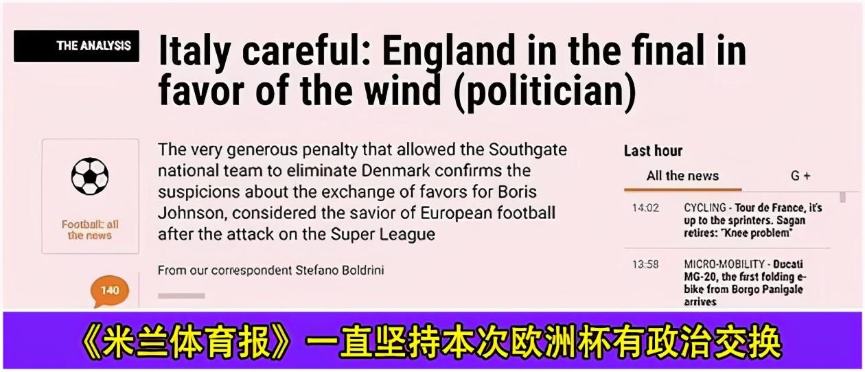 在欧洲其他国家,主流声音均不希望英格兰夺冠,认为英格兰在比赛中获利颇多——英格兰在本届欧洲杯的7场比赛里,只有1场不是主场作战。