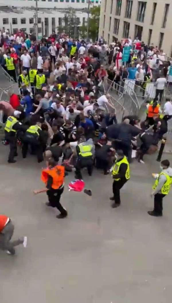不过在球场外,却是没有球票的英格兰球迷率先发难——他们集体冲击温布利球场,一度引发斗殴和混乱……
